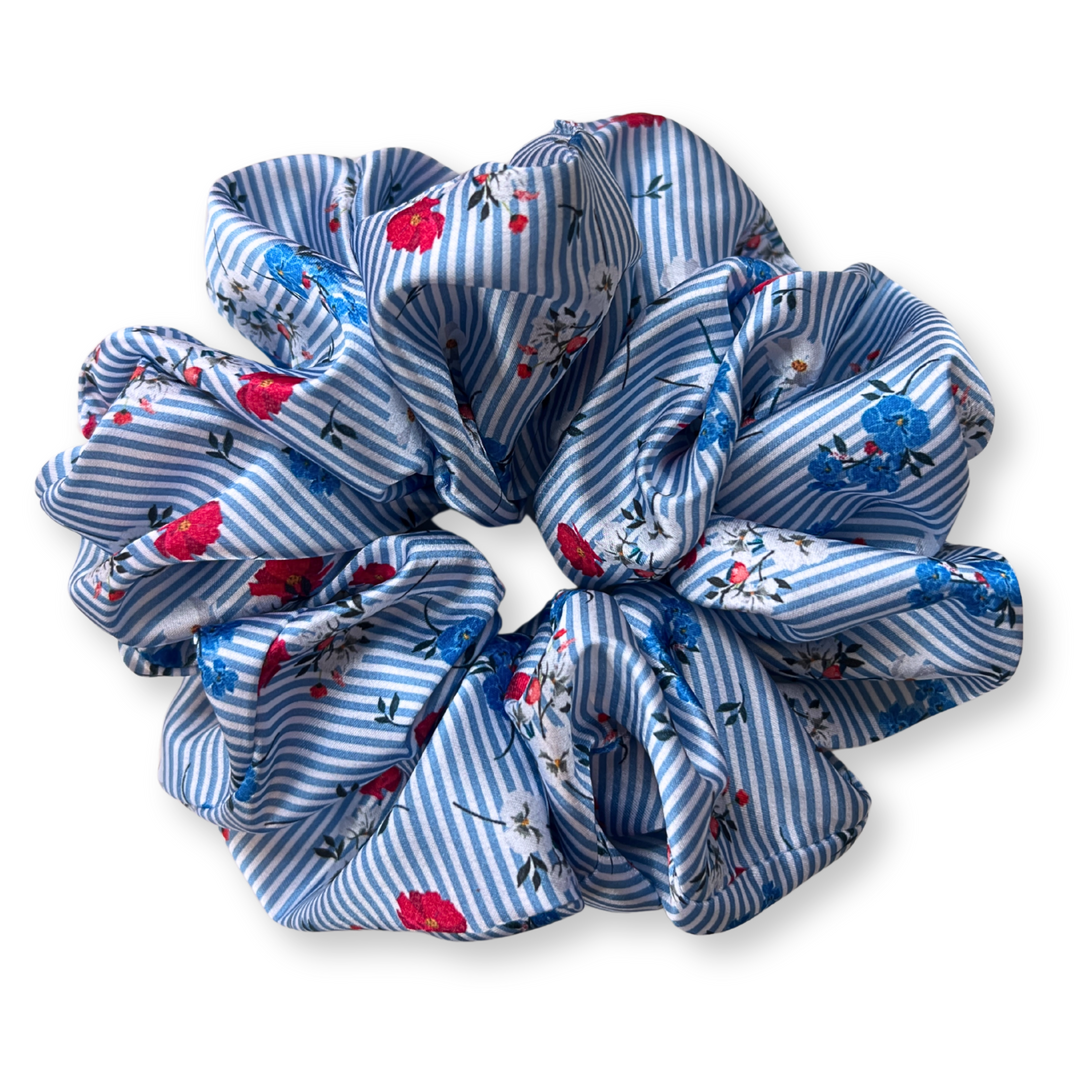 Pinstripe Blossom Scrunchie